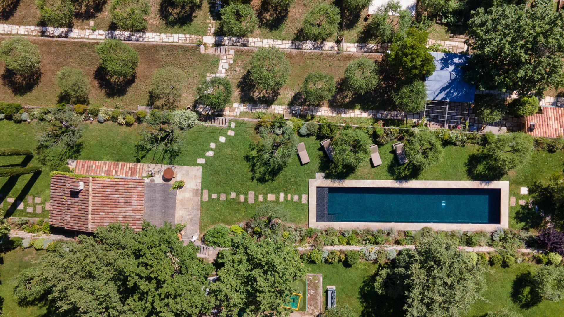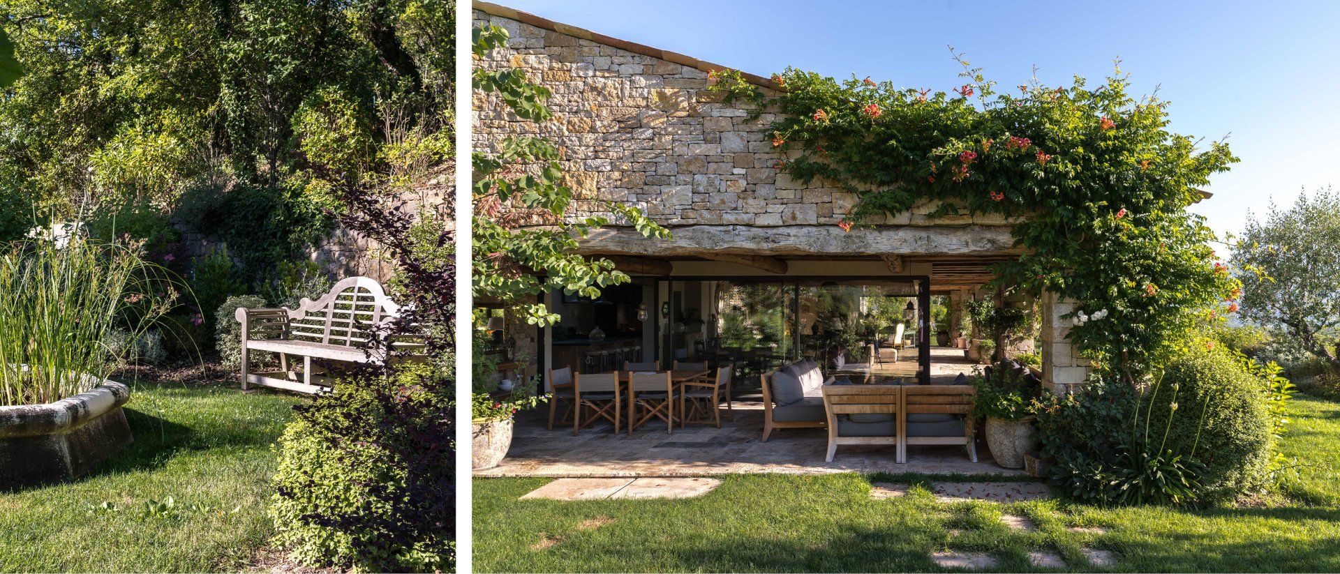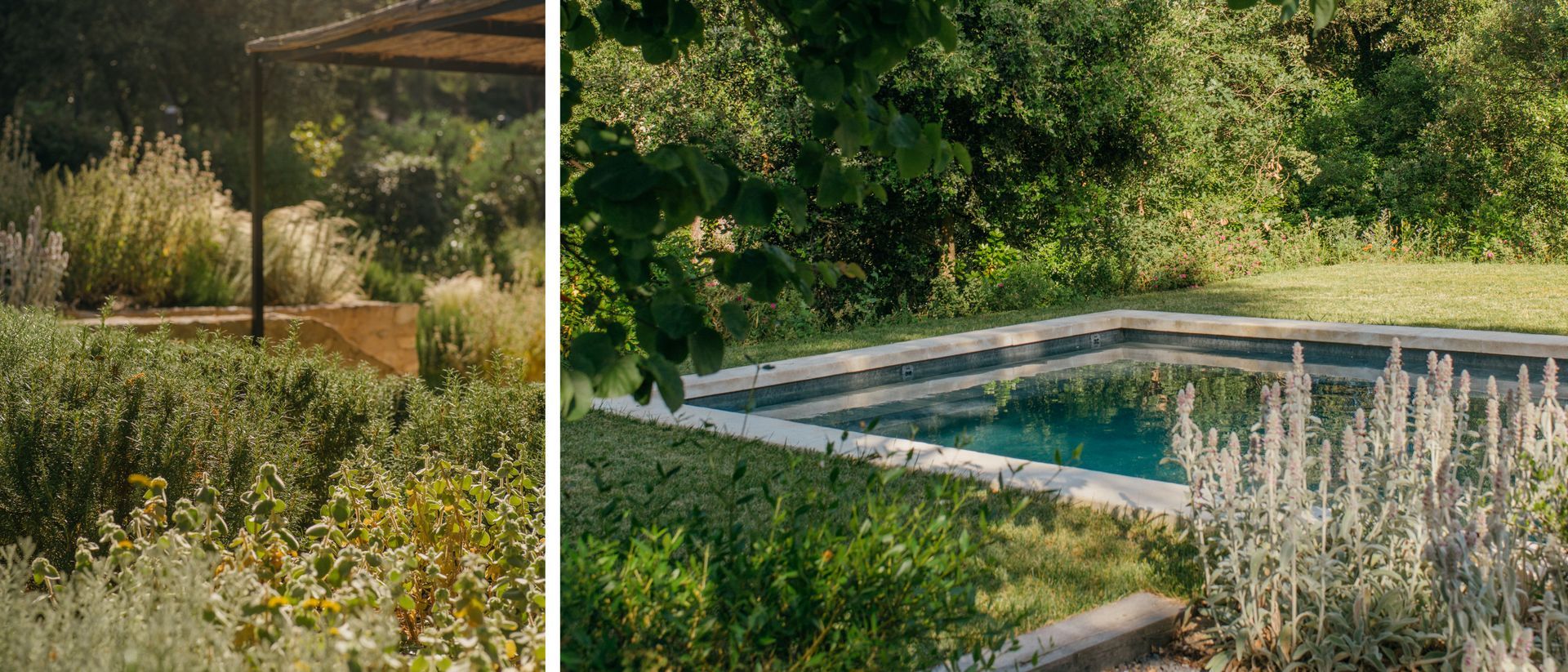 La rénovation de l’ancien cabanon en pool-house offre un espace de détente confortable pendant la période estivale. Le bassin de nage évoque les anciens bassins d’irrigation et l’héritage agricole du site, les paysagistes ont opté pour une margelle en pierre de taille, épaisse et évocatrice. Les fontaines, les bancs et les terrasses secondaires ponctuent le jardin, animant des espaces de repos offrant des perspectives sur le paysage environnant.